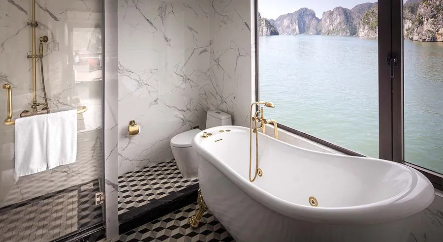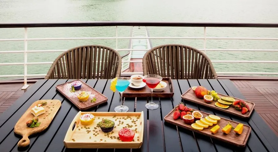 Launched in November 2018, Ambassador Cruise by now has been affirmed its notable reputation among Halong Bay luxurious cruises. Not only being the BIGGEST and NEWEST steel vessel in Halong Bay, but Ambassador Cruise also possesses distinctive highlights: signature Michellin menu with various options, finest amenities, one and only outdoor jacuzzi in Halong Bay Cruises, classy live music, and professional butlers; which make it exceptional to the others. Confidently proud as a top-notch cruise, Ambassador Cruise assures that every single moment of yours in Halong Bay would be the incredibly sumptuous experience ever.